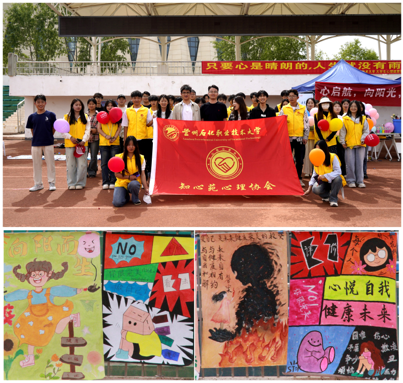 5 月 25 日,正值全国大学生心理健康日,为深入贯彻落实教育部关于加强高校心理健康教育工作的指导精神,切实提升学生心理健康素养,我校以 “心悦自我,健康未来” 为主题,在学校操场举办大型户外宣传活动。此次活动吸引全校 1000余名师生参与,心理协会60名成员全程参与组织与服务,通过专业化、沉浸式的心理健康教育实践,构建起多维立体的心理关爱体系。